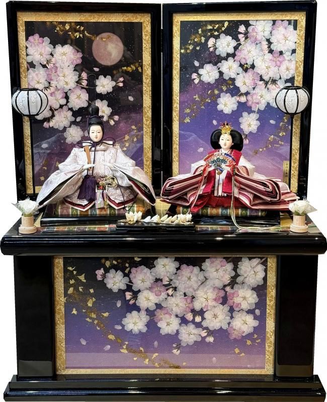 桜の刺繍と美しいピンクグラデーションの生地が華やかなお雛様。